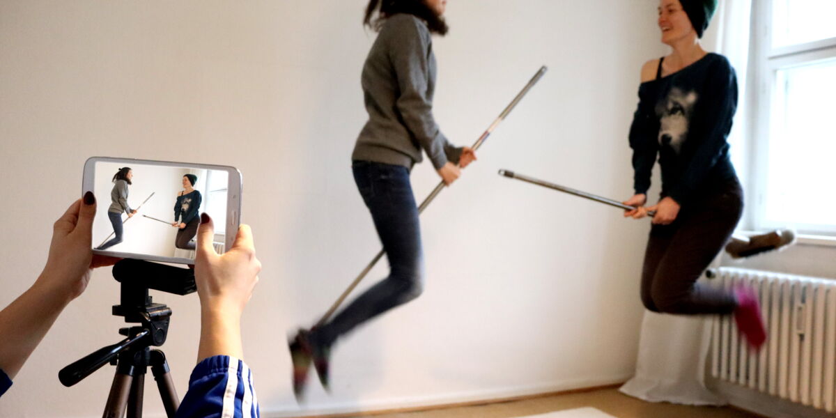 Theater trifft auf Pixilation! Pixilation ist eine Stop-Motion-Technik, bei der die Schüler/-innen selbst zu animierten Figuren werden. Die Gesetze der Physik außer Kraft setzen, zaubern und fliegen können? In diesem theaterbasierten Klassenprojekt ist das kein Problem! Hier experimentieren und spielen die Schüler/-innen mit ihrer Wahrnehmung von Raum, Zeit und Körper. Sie lernen die Grundlagen der Animation kennen und erstellen eine fantastische Bilderanimation mit ihrer eigenen Körpern mittels digitaler Bearbeitung auf Tablets.